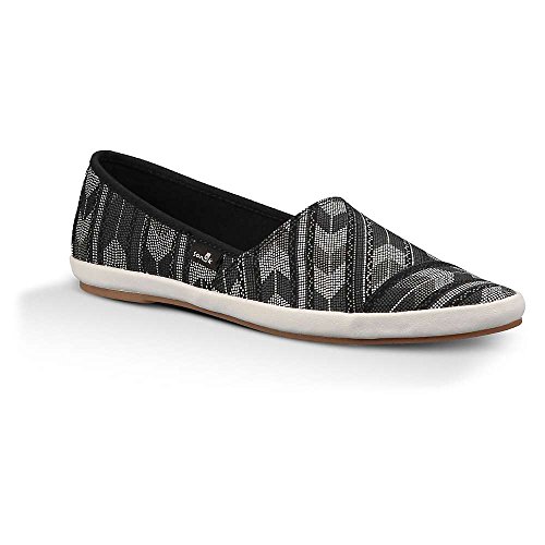 Studio : Sanuk Publisher : Sanuk Binding : Apparel Product Description Add the fun part of your day with the new Sanuk Kat's Meow Prints women's slip-on. Offered with a printed washed canvas upper, it boasts of a sleek pointed toe silhouette for added appeal. Soft canvas lining is comfortable and naturally moisture controlling, while premium, molded EVA footbed featuring AEGIS antimicrobial additive with arch support adds overall comfort that last. The Sanuk Kat's Meow Prints is finished off with a molded rubber outsole that provides all the traction and stability you need to take off with ease. 0