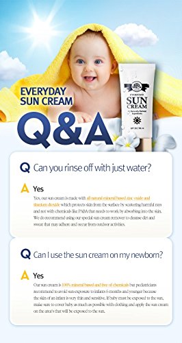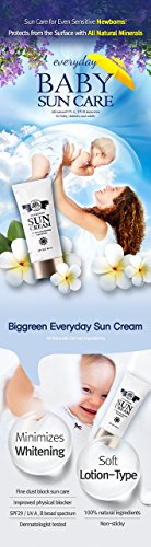 Our broad spectrum chemical free, PABA free and NANO free sun cream protects skin by scattering and reflecting harmful rays from the surface rather than absorbing into the skin causing toxins to build up in our sensitive baby's body. Perfect for pregnant and breast feeding moms. With an SPF level of 29, protects against UVA and UVB rays leaving skin feeling light and smooth without looking white and greasy. So gentle that it does not irritate eyes and skin with chemical allergies. May be used for babies and sensitive adults 365 days a year! Directions: Apply a generous amount to face and body 30 minutes before sun exposure. Remove with our Big Green Everyday Sun Cream Remover.Feature