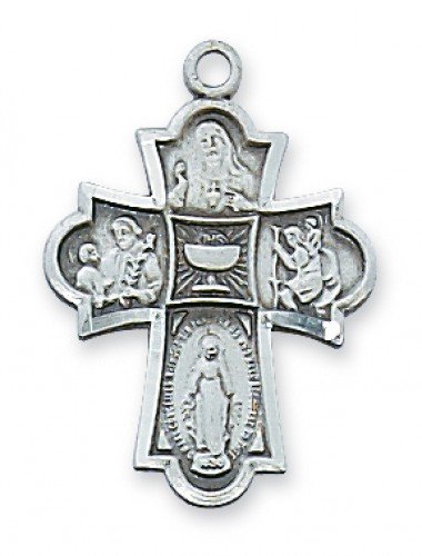 -. Title : Sterling Silver 3/4-inch 4-Way Cross with Chalice Center Medal Pendant