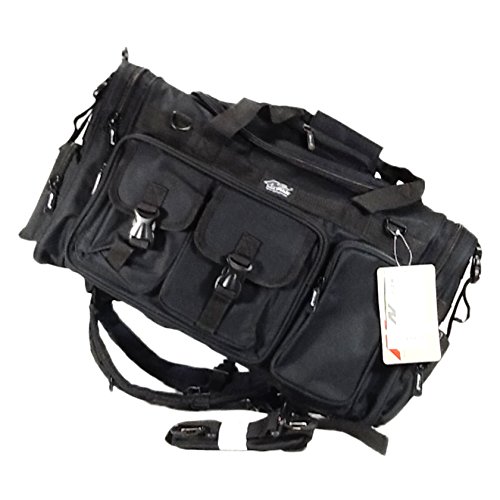 -. Feature : Material: 600D High Density Polyester for daily durable use. Interior water proof PVC lining provides protection from water. Available in Black, ACU Digital Camo, ACU Navy Digital Camo, Olive Green, Tan, Hunters Camo / Stow-away padded/adjustable backpack shoulder straps (stow away in zippered pocket when you don't need them), Removable adjustable shoulder strap with pad; Heavy duty branded zippers; main handle has wrap-around velcro strap for better grip / Excellent storage: 2 front buckle strap pockets, 2 zippered front pockets, U-shape opening main pocket, zippered pocket on top of main compartment flap, 2 side zippered pockets on each side / Dimensions: 26 in. (L) x 13 in. (W) x 11 in. (D) / Attachment points: molle strap system on sides, 2 front D-rings, 2 side (4 total) buckle snap straps