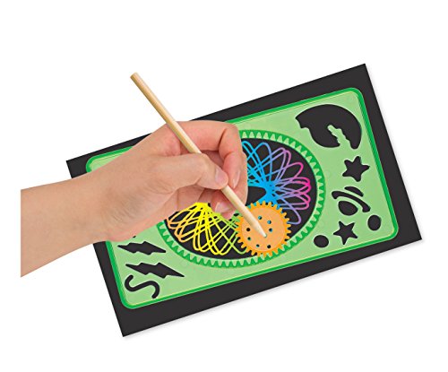 -. Feature : Create swirl and twirl designs / Use templates to make unique art pieces with markers and gears / Make scratch off designs and stickers / Includes 4 templates, 16 gears, 8 markers, stylus, 16 paper sheets, 10 Scra-fitti sheets, 5 sticker sheets and easy instructions / Recommended for children 6 years of age and older