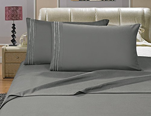#1 Best Seller Luxury Bed Sheets Set on Amazon! - HIGHEST QUALITY 1500 Thread Count Egyptian Quality Wrinkle, Fade, Stain Resistant - Hypoallergenic - 4 Piece Sheet Set, QUEEN , Gray