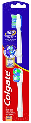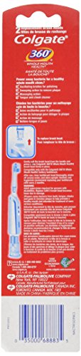 Remove four times more bacteria than the leading battery toothbrush (Overall tongue bacteria vs. brushing teeth alone) with Colgate 360 Whole Mouth Clean powered toothbrush. Complete with a cheek and tongue cleaner and oscillating, dual-action brush head, the Colgate 360 powered toothbrush helps power away bacteria for a whole mouth clean. Comfortable non-slip handles provides easy grip for brushing and batteries are replaceable.Feature
