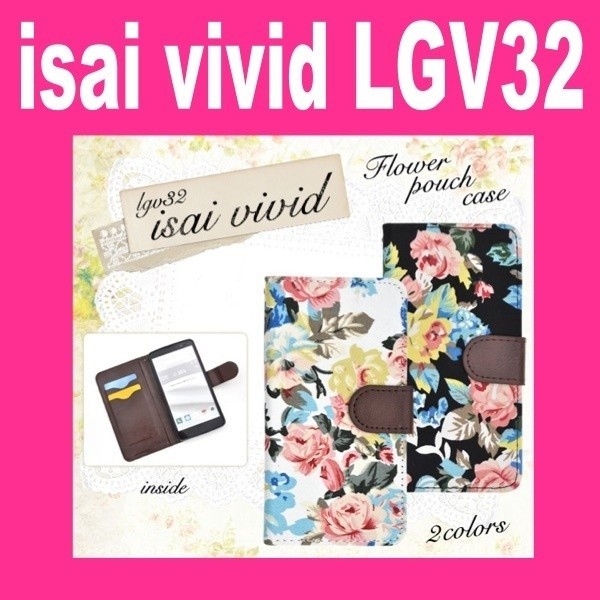 isai vivid LGV32用のエレガントなフラワーポーチケース。