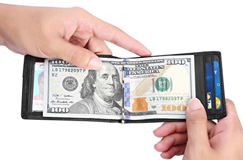 -. Feature : SAFETY. PRIVACY. SECURITY - Our wallets are equipped with advanced RFID SECURE Technology, a unique metal composite, engineered specifically to block 13.56 MHz or higher RFID signals and protect the valuable information stored on RFID chips from unauthorized scans / SLIM AND STYLISH -Designed Quick Access ID Windows, Holds up to 10 cards plus US bills with no bulk, and a minimul Pull-tab design to reduce bulk / GENUINE LEATHER - Made with the Finest Full Grain genuine leather,looks classy and very slim, Wallet Size: 4" in. x 3" in. .4" in. / HOW IT WORKS- At last! A wallet that will meet your everyday needs. The Travelambo wallet is equipped with a front pocket made for your most used card. 2 pockets on the inside, with a photo ID slot, and a money clip to hold your cash. Wallet case also has smart pull-strap for quick access to your everyday cards. / NO HASSLE MONEY BACK GUARANTEE - We know you'll love our wallet as much as we do, if for any reason you're not 100% SATISFIED, let us know and our customer service team will make things right: full refund or a free replacement, whichever you prefer.