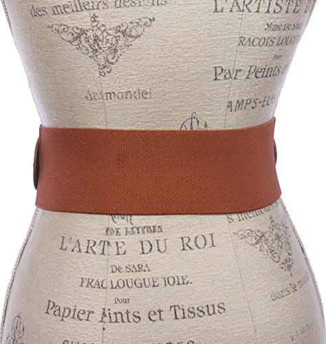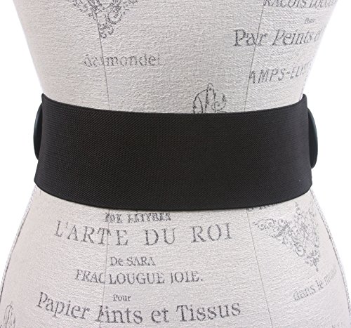 Product DescriptionThis self covered round buckle stretchy belt is made of faux leather - animal free material. Approx 3" wide. Sizing: Size S/M fits 27" ~ 32" waist; Size M/L fits 31" ~ 36" waist; Size L/XL fits 35" ~ 40" waist.0