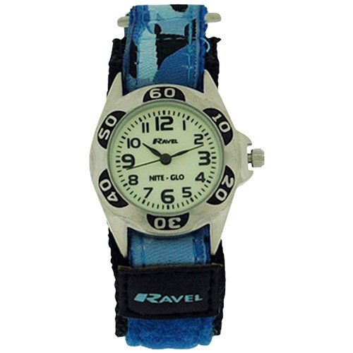-. Title : Ravel Nite-Glo Quartz Luminous Dial Blue Camouflage Velcro Boys Watch R1707.6