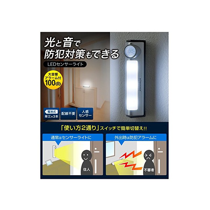 원본상품명: Yihiro 【防犯アラムLEDセンサライトの1台2役! 】 人感をセンサすると 大音量ブザ LEDライト付き 夜間自動点 廊下 玄 ドア 防犯グッズ 電池式 簡取付