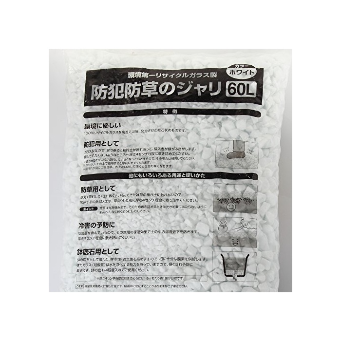 원본상품명:アイリスオヤマ 砂利 防犯砂利 防草 60L ホワイト