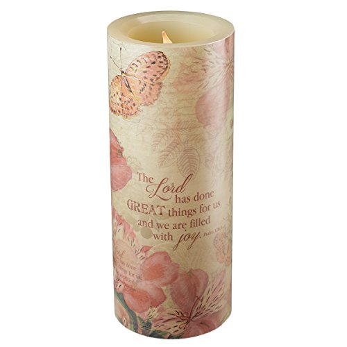 Floral Inspirations Collection Flickering Flameless Wax Pillar Candle (Large 4 x 9 7/8 inch) - Psalm 126:3