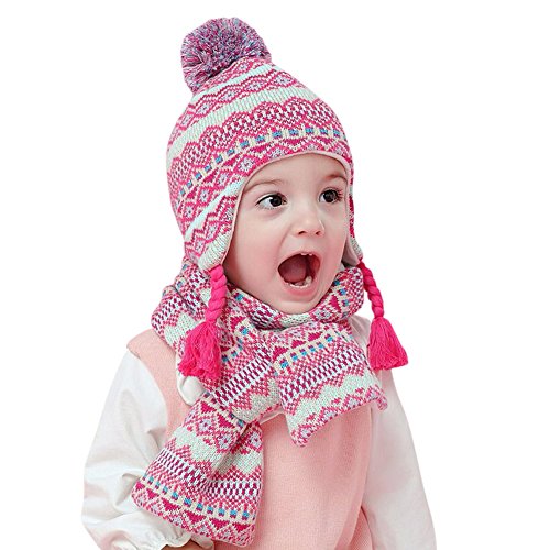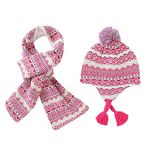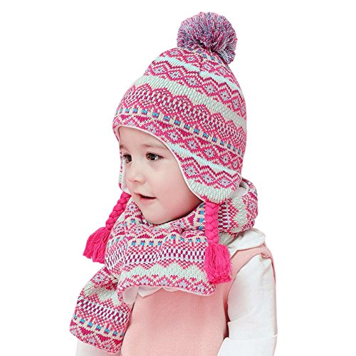 (Tortor 1Bacha)/Accessories/Cold Weather Accessories/DIRECT FROM USA/Tortor 1Bacha Infant Baby Kid Girls' Aztec Knit Pom Pom Braid Ear Flap Hat Scarf Set