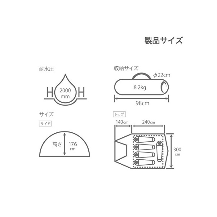 내수압:아우터 텐트1,500mm 플로어:2,000mm