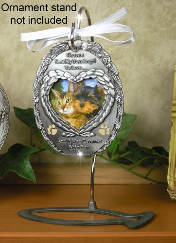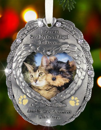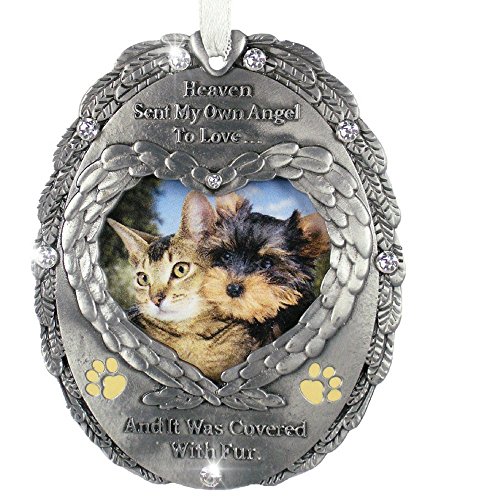 Loving Memory Pet Photo Remembrance Ornament - Embossed with the Saying, Heaven Sent My Own Angel to Love and It Was Covered with Fur – Pet Memorial Ornament – Pet Sympathy