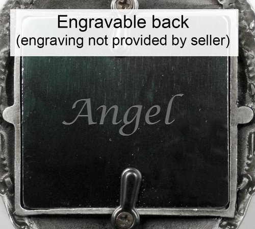The brushed-metal ornament is accented with crystals, and the metal photo plate cover is engravable (not provided by seller)