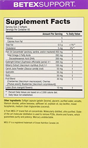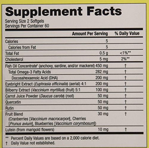Provides 10 mg of lutein, 200 mg of omega-3 DHA per two softgels