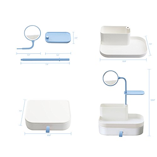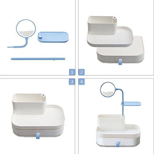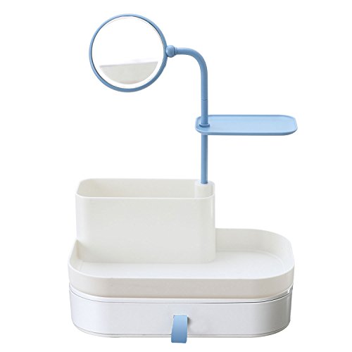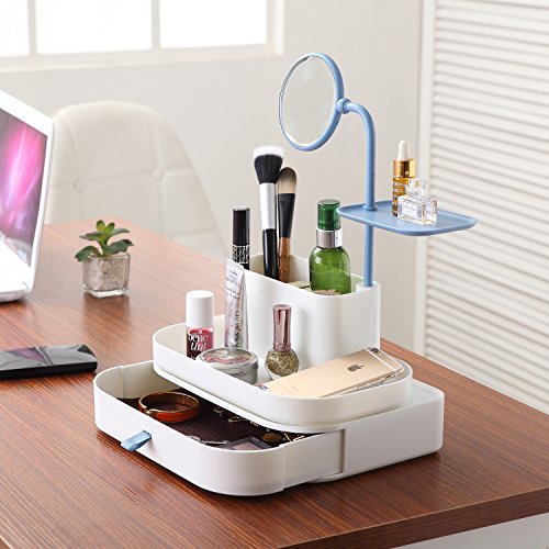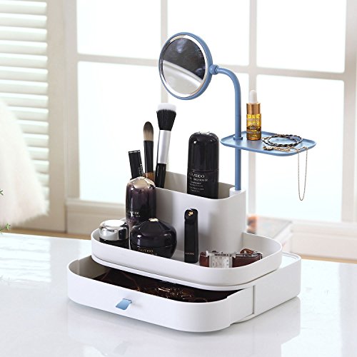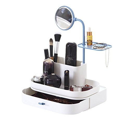 Segarty Stylish Makeup Jewelry Cosmetic Organizer - Multifunctional Makeup Brush Holder Storage with Rotatable Mirror - Fits for Cosmetics and Accessories, Blue