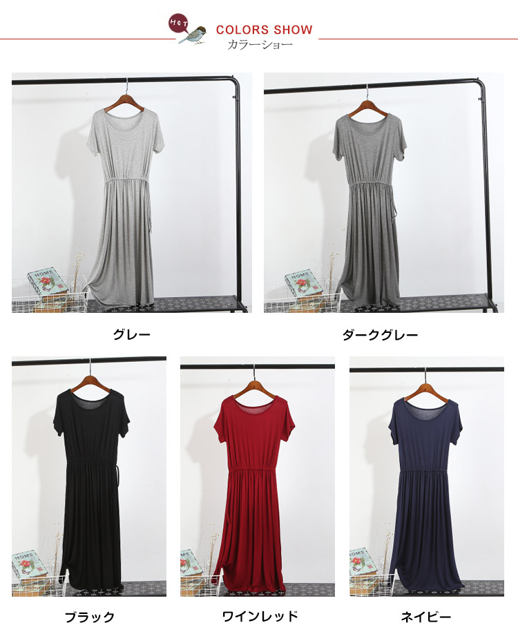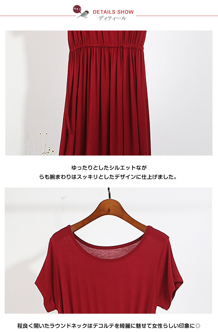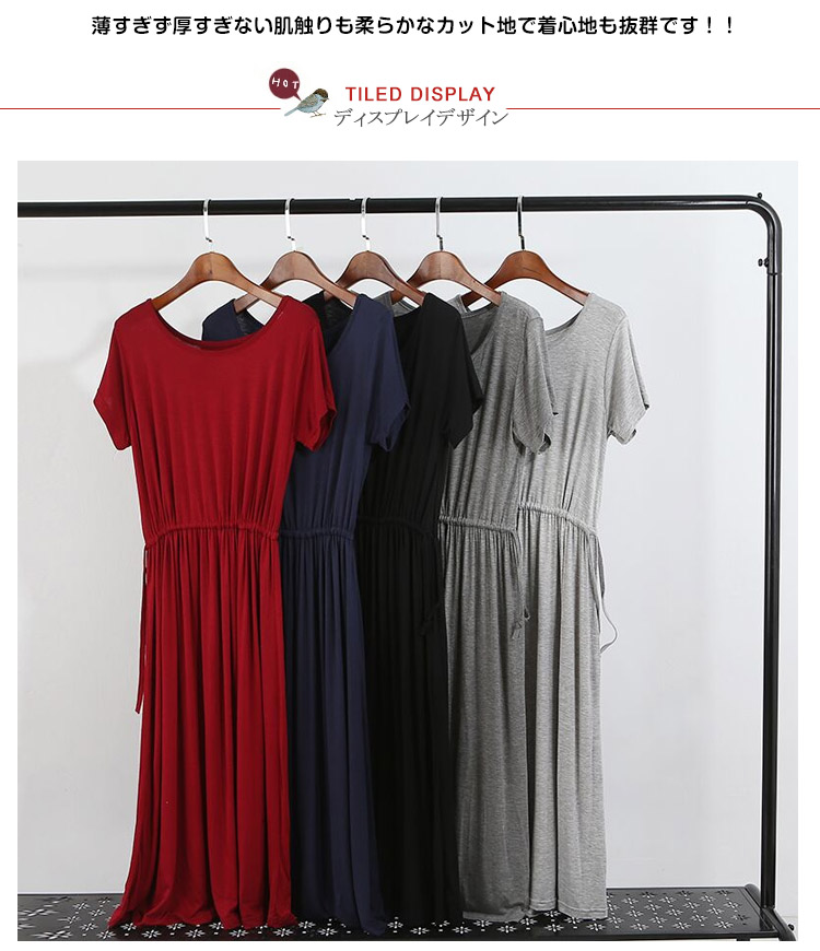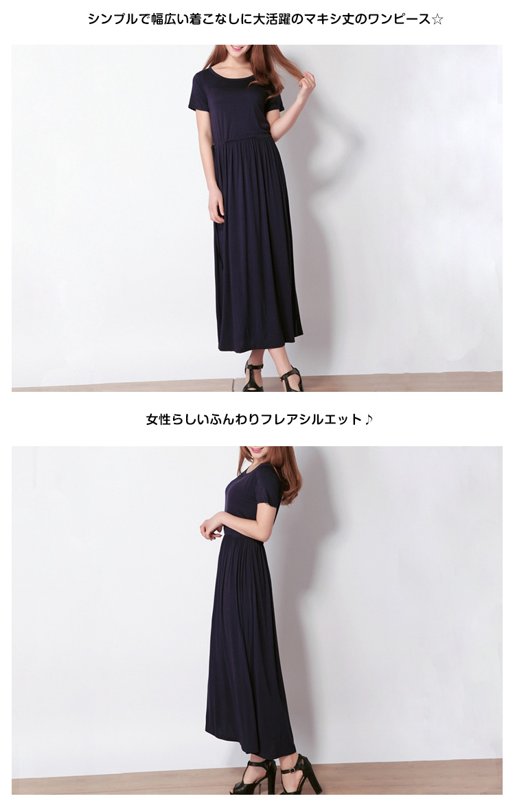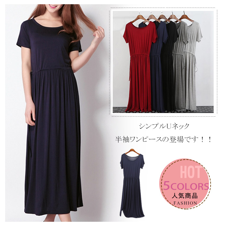 | シンプルUネック半袖ワンピースの登場です!!シンプルで幅広い着こなしに大活躍のマキシ丈のワンピース☆女性らしいふんわりフレアシルエット♪薄すぎず厚すぎない肌触りも柔らかなカット地で着心地も抜群です!! | |
