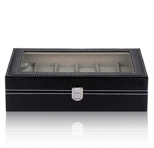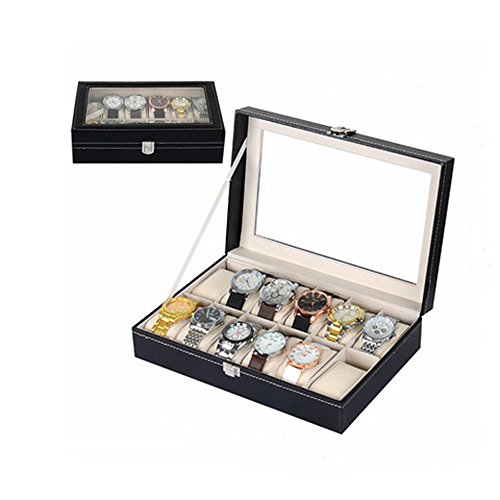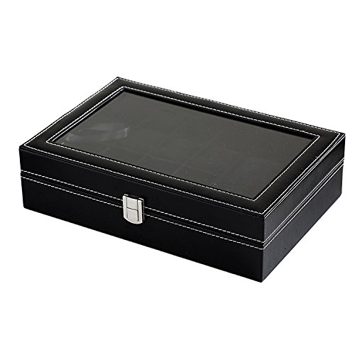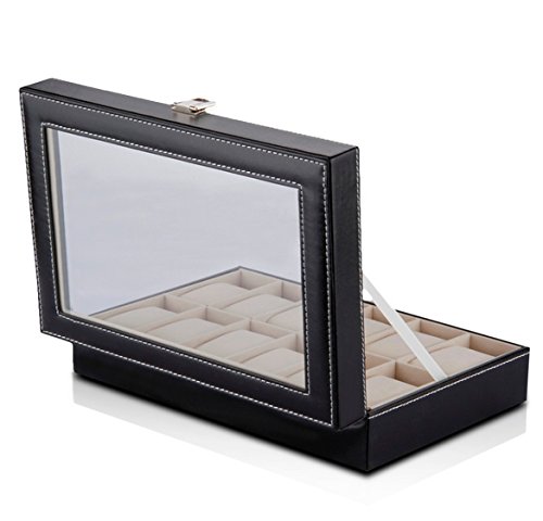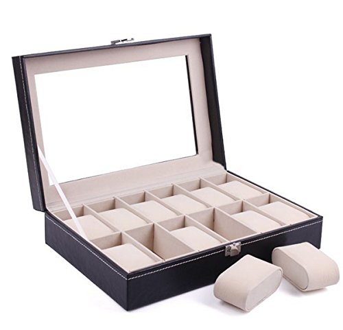 -. Title : Genenic Glass Top Watch Display Box,12 Grid Case Jewelry Storage Organizer For Watches