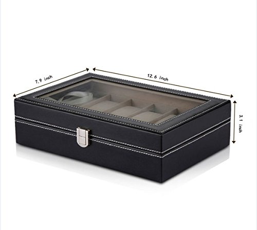 -. Feature : DETAILED SPECIFICATION: Product size: 320mm L x 200 W x 80mm H(12.6x7.9x3.1inch), Pillow Size: 45mm L x 80mm W x 35mm H(12.6x3.1x1.4inch).Case Size: 320mm L x 105mm W x 220mm H(12.6x4.1x8.7inch). / SUPERIOR QUALITY: Excellent carbon fiber surface.Large glass window.Sophisticated stainless steel metal plate.Interior is covered in ultra smooth PU leather. / 12 LARGE WATCH SLOTS: Capacious room for your large watches, 12 removable velvet pillows included. / MULTI-FUNCTIONAL: Perfect for personal use,business use,ideal for home jewelry decoration and free gift for your father, boss, friends or any other watch lover in your life. / UNIQUE,CONVENIENT & ATTRACTIVE DESIGN: Watch Box boasts a beautiful and a more convenient design than the other watch boxes out there.The perfect balance of modern ,sophistication and class to create this unique box and its attractive metal plate.