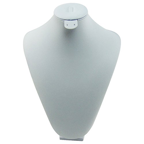 -. Feature : White faux leather stand is indispensable to display a precious necklace in a jewelry shop, trade show, to take photos for online sales, or for home jewelry organization / Leatherette stand features great softness to protect the jewelry while on display or while stored, and is made durable for years of use / This neck display bust form is made of white leather fabric, featured by great softness which is particularly beneficial to jewelry, pendants, and necklaces / Neck Display ships brand new, with our 100% satisfaction guarantee / Necklace stand is suitable for displaying a necklace, pendant, and other jewelry and measures 12-1/2" tall x 9" wide at the bust