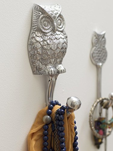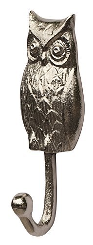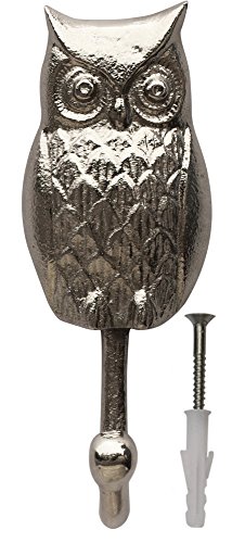 Decorative Hand Cast Aluminum Owl Single Wall Hook (6.2 Inch) Decorative Owl Figurine Wall Mounted Hook – Polished Finish Heavy Duty Hooks For Clothes, Hats, Keys and More - With Screws and Anchors