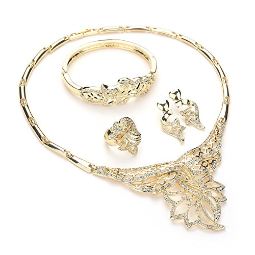 -. Feature : MOOCHI® is a US registered trademark and MOOCHI Fashion is its only owner to design, manufacture, sell our high quality jewelry. / Jewelry Sets of necklace & bracelet & ring & one pair of earrings / Size: As Picture Marked, open size ring fits for most / Nickel & Lead Free, Gold plated, harmless and hypoallergenic for skin / Shinning, beautiful, luxury looking jewelry set for Celebration, Wedding, party, holiday and Show