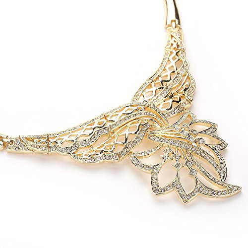-. Title : Moochi Gold Plated Flower Pattern Big Necklace Earrings Bracelet Ring Jewelry Set
