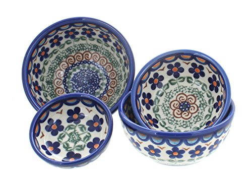 Polish Pottery Aztec Flower Measuring Bowl Set