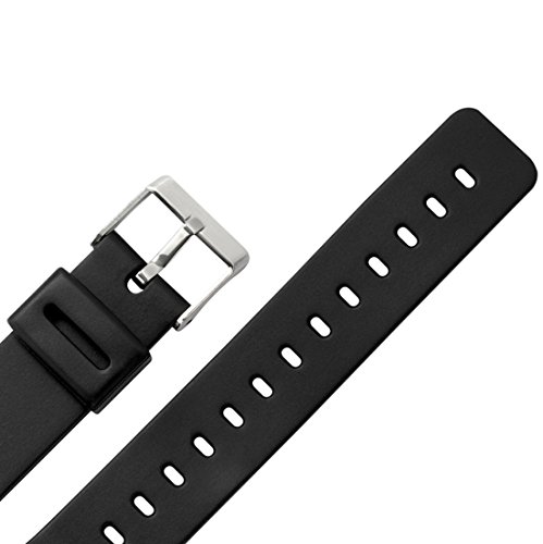 DESIGN - schlichtes Ersatzband mit glatter Oberflache in der Farbe Schwarz aus Kunststoff in sehr guter Qualitat | verjungende Bandform des Uhrenbandes von 21mm auf 18mm | komfortables Uhrband passend zu sportlichen Uhren | mit klassischer Dornschliesse