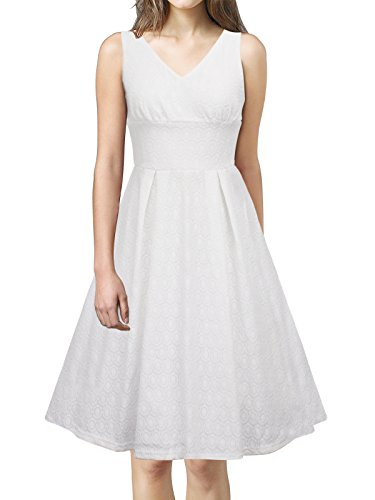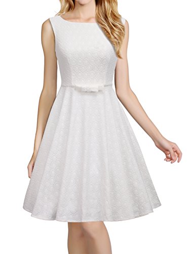 iLover Classic Vintage Audrey Hepburn Style 1950's Rockabilly Large Hem Evening Dress (White, XXX-Large)