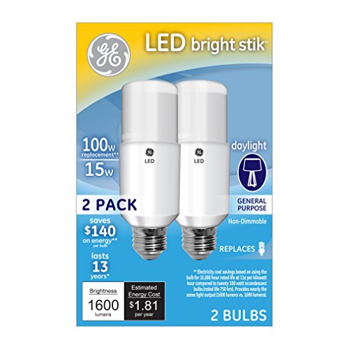 GE Lighting 63869 LED Brightstik 15-watt (100-watt Replacement), 1600-Lumen Light Bulb with Medium Base, Daylight, 2-Pack