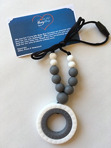 Baby Silicone Teething Necklace, (Gray) 100% BPA Free