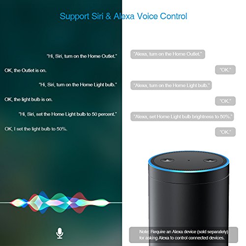 Use Siri or Alexa to turn on / off the outlet and the night light separately or set brightness of the night light. Android devices users using voice control will need Amazon Echo (not Included).