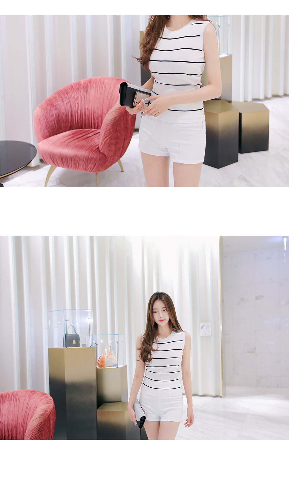 슬림한 바디라인이 돋보이는 나시 아이템을 소개해요.