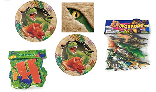 Dinosaur Blast Dinosaur Themed Party Goods: 16 plates, 16 Napkins, Jointed Banner, and 12 Plastic Toy Dinosaurs