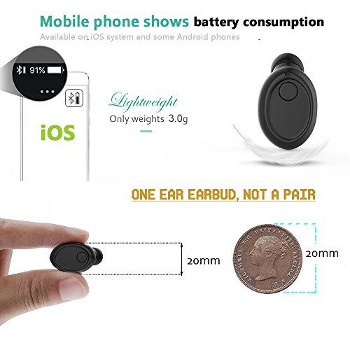 ★Longer music/talk time: the GS-Mini Pro wireless earpiece with built-in rechargeable lithium-poly 50mAh battery, last for 6 hours of audio playtime under 60% volume, 7 hours talk time, 1.5-2 hours charging time(Only one earpiece)