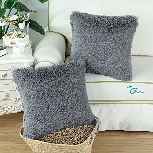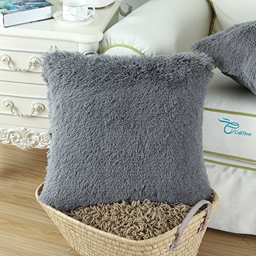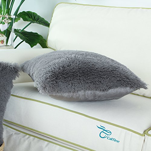 CaliTime Super Soft Throw Pillow Case Cover Plush Faux Fur 18 X 18 Inches Grey