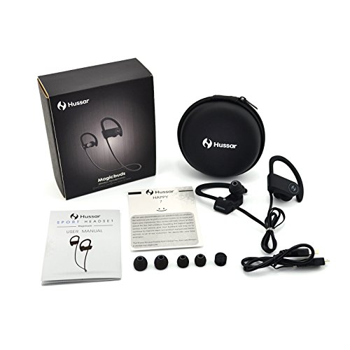 Enjoy your favorite tunes and calming sounds with no strings attached. We provide 100% satisfaction guarantee. They say music soothes the savage beast. That¡?s especially true when you have powerful, in-ear bluetooth earbuds designed by the audio specialists at Hussar. We¡?ve carefully crafted our 4.1 Bluetooth Headphones to not only be compatible with all the hottest mobile technology¡ªlike your iPhone, Samsung Galaxy, Windows phone, iPad mini, and Alienware laptop¡ªbut we¡?ve made them super comfortable and secure with ergonomic design so you never have to miss a beat. Offering up to 7 hours of glorious listening and a hands-free, wireless design, the Hussar 4.1 Bluetooth Headphones connect to your devices up to 33¡? away without losing an ounce of sound clarity. Whether you¡?re hitting the gym, doing yoga, or just love listing to podcasts 0