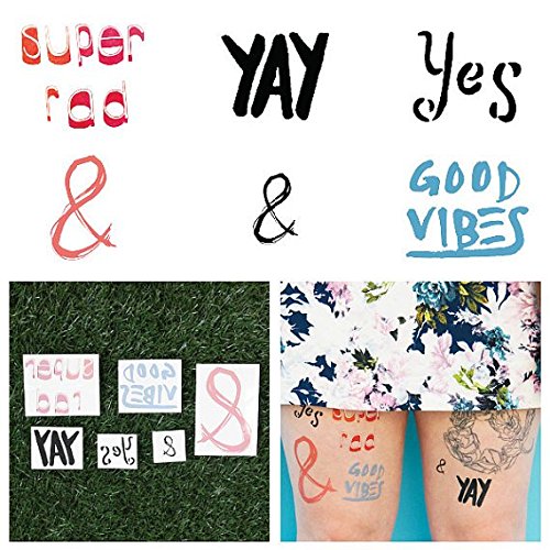 Tattify Cool Typography Temporary Tattoos - Just My Type (Complete Set of 12 Tattoos - 2 of each Style) - Individual Styles Available and Fashionable...