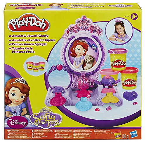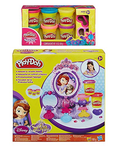 Bundle of 2 Items - Play Doh Disney Princess Sofia the First Amulet & Jewels Vanity Playset + Play-Doh Sparkle Compound