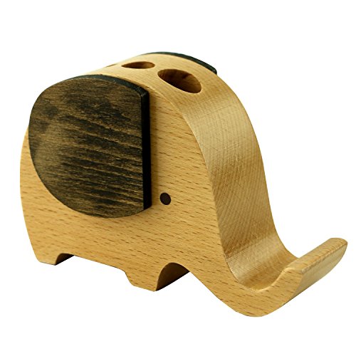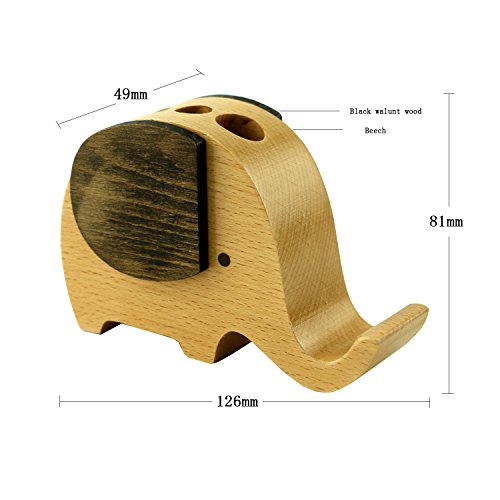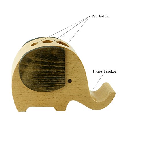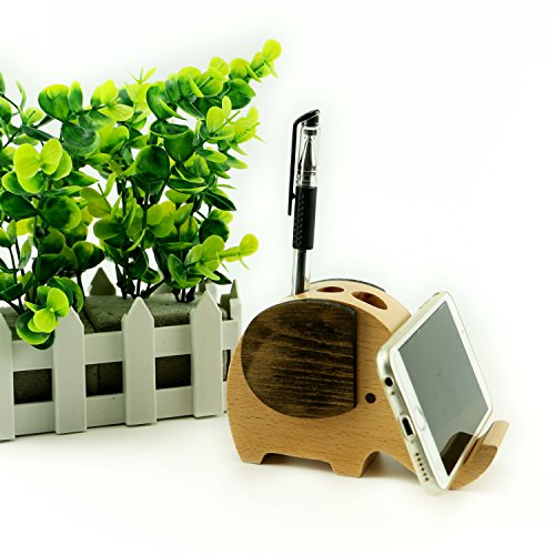 Kercan Wood Elephant Pen Holder Wooden Container With Phone Holder Desk Organizer