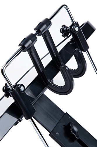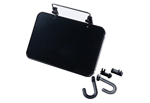 bracket,then hook under the headrest and hand off the seat back adjust the tray to suitable height and tighten both knobs adjust the angle of the tray horizontally and tighten the knob on the frame. to fold the tray loosen the knobs fold the tray against the seat back