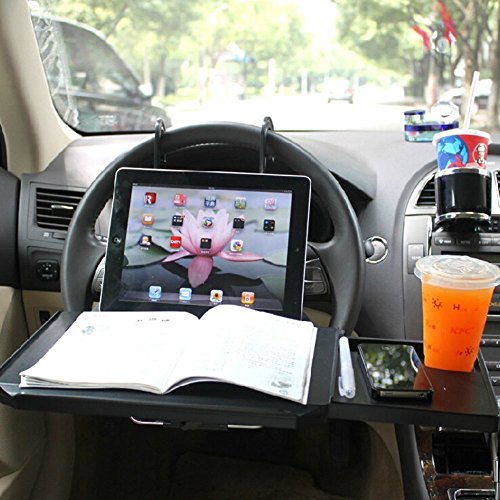 autvivid Foldable Steering Wheel & Backsaet Tray with Cup Stand Holder for Laptop Tablet iPad Drink Food