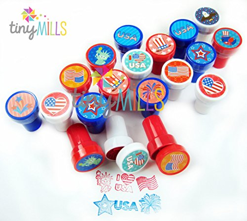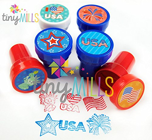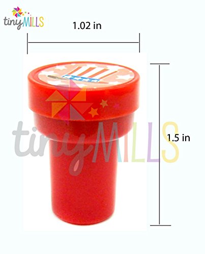 Keep the kids (and adults!) entertained during 4th of July BBQ's or Memorial Day picnics! These stampers also make great party favors for your patriotic themed parties. They are also perfect to use at school or home to teach kids about Independence Day! Create your own invitations, greeting cards, scrapbook designs and decorate stationery. Have this stamp assortment at home, in the classroom, or in art class! Our stamps are non-toxic, lead-free have passed all CPSIA and ASTM testing. Safe for children to use. 1.5 inches tall, 1 inch in diameterFeature