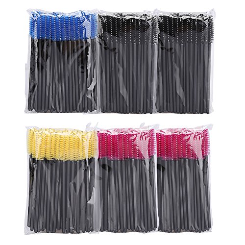 -. Feature : High cost-effective, good to on-the-go and everyday usage / To bring along on trips, to use at weddings, proms, or performances / The eyelash mascara wands head is elastic and can be bend slightly according to your needed / Easy to use and convenient to carry; Enough to satisfy your needs / Package includes 300 pieces disposable eyelash brushes, including 100 * Black, 100 * Pink, 50 * Blue , 50 * Yellow disposable eyelash brushes