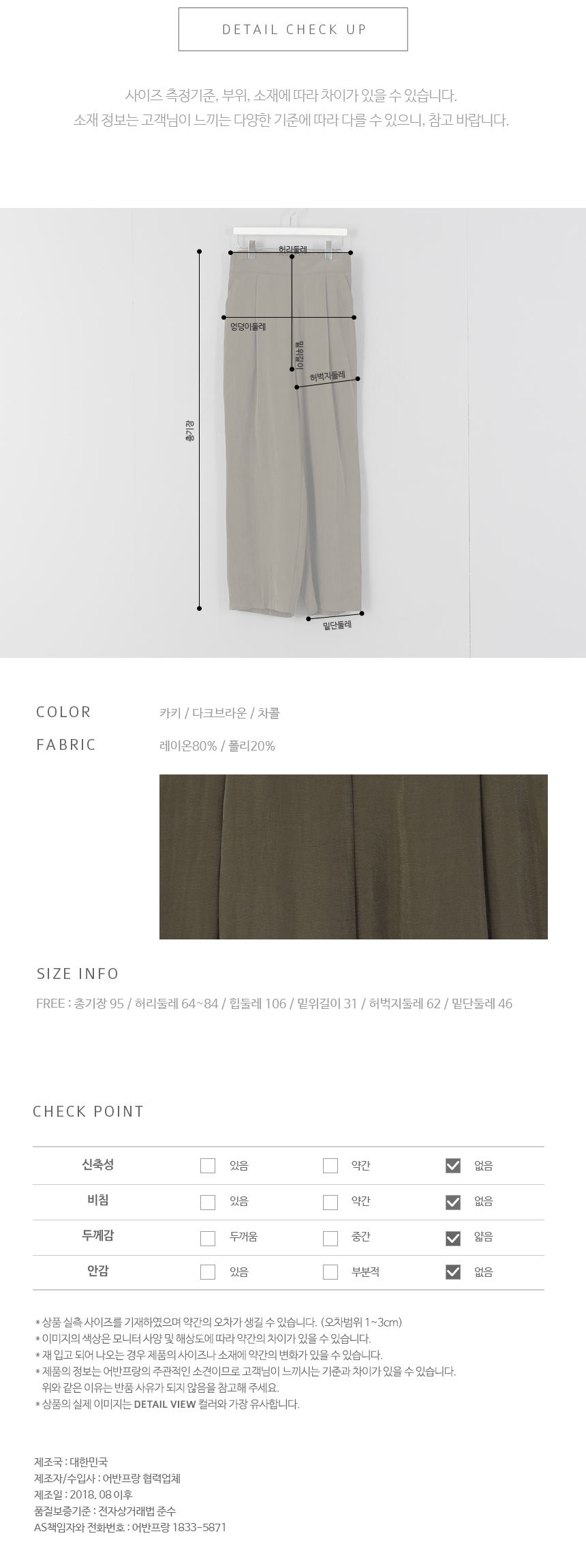 카키, 다크브라운, 차콜 사이즈는