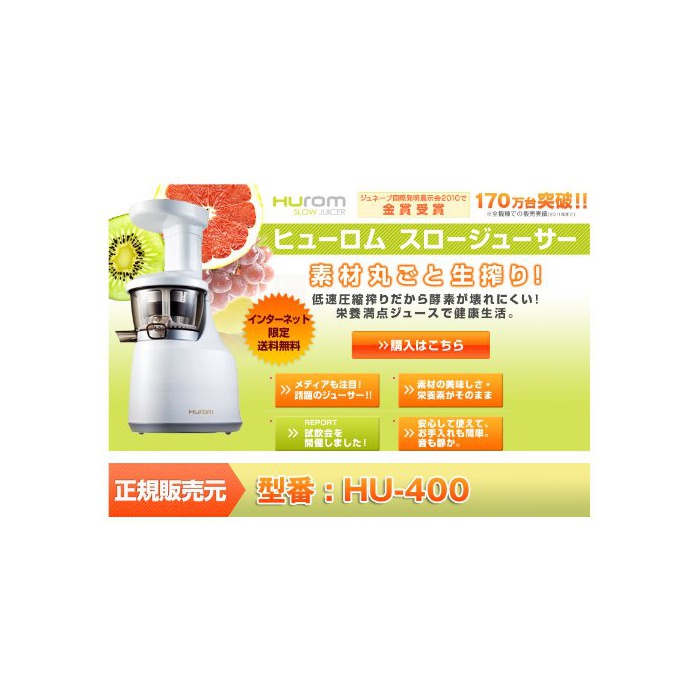 《휴로무》 【2012년 신모델/HU-400】휴로무HUROM슬로우 쥬스【정규 판매원】저속 압축 조임 탑재