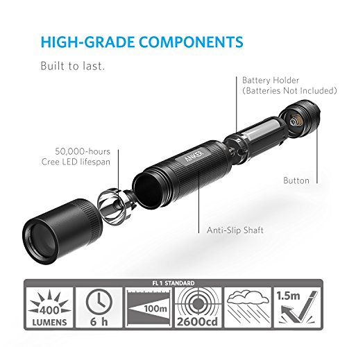 Anker Bolder LC40 LED Flashlight [2 PACK], Pocket-Sized LED Torch, Super Bright 400 Lumens CREE LED, IP65 Water Resistant, 3 Modes High/ Low/ Strobe for Indoors and Outdoors