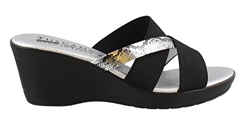 (Easy Street)/Women's/Sandals/DIRECT FROM USA/EASY STREET Women's Tuscany, Berenice Mid Heel Wedge Sandals Black Silver 11 W