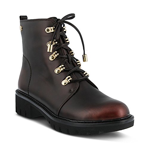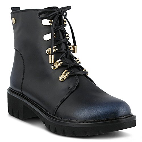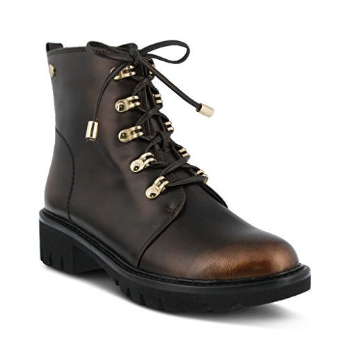 Product DescriptionEdgy combat boot with shiny gold tone metal hardware.0